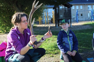 Auch das Waldmobil machte Halt im Hort und brachte verschiedenste ausgestopfte Tiere mit, wo die Kinder auf Besonderheiten an ihnen hingewiesen wurde. Beim Ausflug in das nahegelegene Wäldchen wurden Spiele mit Naturmaterialien durchgeführt und der Wald auf eigene Faust erforscht, sodass man manch totes Tier fand.