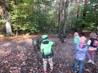 Große Begeisterung löste auch der Besuch bei Frau Erdmann im Collmer Wald am Wildschweingehege aus. Hier durften die Kinder die Wildschweine mit ihren Bachen und Frischlingen beobachten und erfuhren viel über deren Lebensweise und den Sinn des Geheges. Passend zum Thema bastelten die Kinder kleine Igel aus Naturmaterialien und bauten ihnen gleich noch einen gemütlichen Unterschlupf für den Winter. Zum Abschluss wurde an der Feuerschale gemeinsam eine leckere Wurst gegrillt – ein rundum schöner Tag in der Natur.