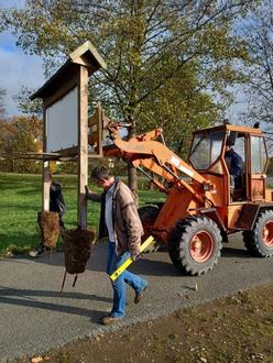 „Mitglieder des Heimat- und Traditionsvereines Malkwitz e.V. bereiten vorab den Aufsteller für die neue Orientierungstafel am Standort Malkwitz vor.“ Foto v. C. Kühne