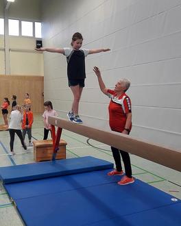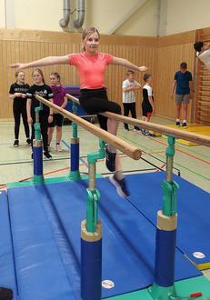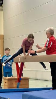 Dann ging es an die Geräte. Geturnt wurde am Boden, auf dem Balken und am Barren. Trotz unterschiedlicher Leistungen gaben sich alle viel Mühe, turnten mit viel Ehrgeiz und Freude, was auch der Beifall der Zuschauer bewies. Viele Eltern waren über die Leistung ihrer Kinder erstaunt und dankbar, dass sie bei der Übungsstunde dabei sein durften.
