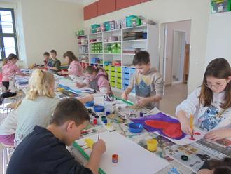 Mit Pinsel und Farbe entstanden in unserem großen Kreativraum viele schöne farbenfrohe Bilder. An einem anderen Vormittag wurden dort interessierte Kinder in die Kunst der Kalligrafie eingeführt.