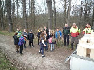 Mit Unterstützung von Mitarbeitern des Sachsenforstes, unter Leitung von Herrn Erdmann, konnten wir die Nistkästen bei einer Wanderung und passendem Wetter im Landschaftsschutzgebiet Wermsdorfer Wald, Nähe Tiefenteich, aufhängen.