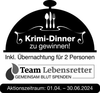 Einen zusätzlichen, spannenden Anreiz für die gute Tat möchte der DRK-Blutspendedienst Nord-Ost im 2. Quartal bieten. Bereits seit April noch bis einschließlich Ende Juni 2024 können Spenderinnen und Spender an der Verlosung für den Besuch eines Krimi-Dinners in Berlin, Hamburg oder Leipzig inklusive Übernachtung/Frühstück für zwei Personen teilnehmen und mit etwas Glück ein tolles Event live und hautnah erleben. Wer zusätzlich noch einen Erstspender oder eine Erstspenderin zur eigenen Blutspende mitbringt, dem ist durch ein weiteres Los eine weitere Gewinnchance garantiert. Kommen Sie ins Team Lebensretter!