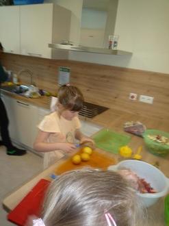Mit Begeisterung schnippelten die Mädchen und Jungen am Dienstag in unserer neuen Kinderküche ihr mitgebrachtes Obst und zauberten daraus eine riesengroße Schüssel voll leckeren Obstsalat. Das machte Spaß und schmeckte allen gut.