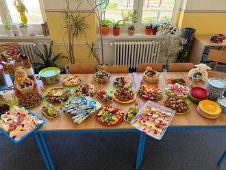Auch in diesem Jahr, konnten wir wieder ein abwechslungsreiches Programm für unsere Hortkinder zusammenstellen. So bereiteten wir am ersten Tag ein leckeres Ostermenü zu. Serviert wurde, Karottensalat verfeinert mit Apfel und Paprika, als Hauptspeise Nudelsalat mit Wiener, „Ostermimosa“ als erfrischendes Getränk und ein Dessert in Hasenform mit Paradisecreme. Allen Kindern mundeten die selbst kreierten Speisen sehr.