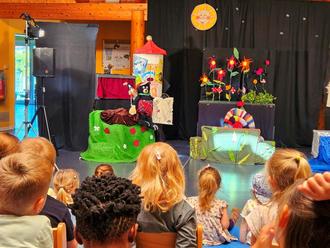 Zur Vormittagszeit versammelten sich alle auf der großen Diele der Kita – hier stand ein besonderes kulturelles Erlebnis auf dem Programm: Das Theater Vagabund war zu Gast und begeisterte mit einem kindgerechten, fantasievollen Theaterstück.