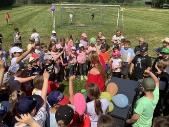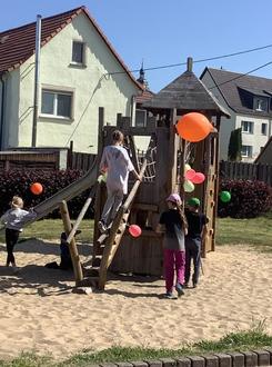 Im Team gelang es allen Kindern, die gestellten Aufgaben zu lösen. Die Route stellte alle auf die Probe, denn Orientierungssinn, Zusammenhalt und kluge Köpfe waren gefragt. Bei allerbestem Wetter mit eingeplanten Pausen für das Frühstückspicknick unter freiem Himmel waren alle unterwegs. Geschafft und überglücklich fanden sich alle Gruppen nach und nach am Zielort ein. Nachdem unter gebührendem Beifall jede Gruppe noch ein Zielfoto gemacht hatte, konnte der mit Luftballons geschmückte Spielplatz und ein großes Fußballfeld von den Kindern in Beschlag genommen werden.