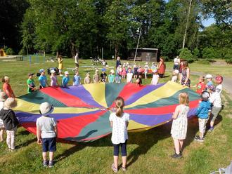Die Kinder der Kita Wirbelwind in Calbitz feierten dieses Jahr ihren Ehrentag im Park in Calbitz. Nach einem leckeren gemeinsamen Frühstück starteten alle Kinder der Kita bei strahlendem Sonnenschein in Richtung Park. Dort angekommen, wurde das Fest mit einem großen bunten Schwungtuch eröffnet. Mit vereinten Kräften hielten die Kinder das Tuch fest und schwangen es gleichmäßig auf und ab. Anschließend wurde zusammen zum „Fliegerlied“ getanzt. Was für ein Spaß! Und dann ging es richtig los …