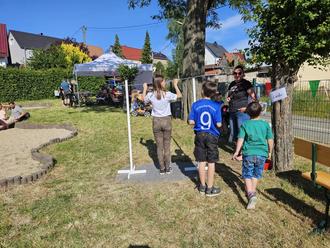 Insgesamt 9 Stationen füllten den Nachmittag der Kleinen und Großen Kinder. Was auch in diesem Jahr wieder eher die Männer und Väter angesprochen hat, war der Teebeutelweitwurf. Letztes Jahr konnte Heiko Klingner mit einem Rekord von 4,10 Meter den Sieg nach Gröppendorf holen.