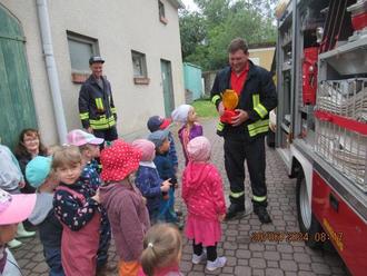 Pünktlich zum Start der Ferien erlebten die Kinder der Kindertagesstätte Lampersdorf einen unvergesslichen Vormittag. Die Freiwillige Feuerwehr machte Station mit einem einem großen Feuerwehrfahrzeug.