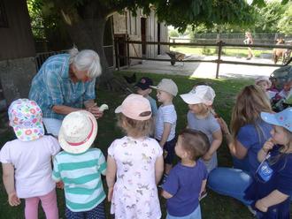 Nach dem alle gestärkt waren, zeigte Frau Krasselt zunächst den Vorschülern ihren Bauernhof.