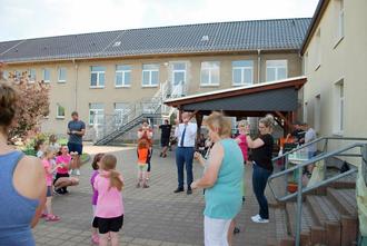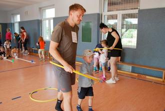 Auf geht`s zum „Strobelsport“ (so nennen es die Kinder) heißt es jeden Mittwoch für 18 Jungen und Mädchen im Alter von 4 bis 6 Jahren. Sie treffen sich in der Turnhalle der GS Calbitz, um bei Sport, Spiel und Spaß zu trainieren. Was 2019 mit einem Schnupperkurs begann, ist seit 2020 fester Bestandteil im Turnverein Wermsdorf. Gleich nach der Gründung kam Corona, da traf sich die Gruppe im Freien, um sportlich aktiv zu sein. Neben dem Training in der Halle wird auch an Veranstaltungen des Vereines teilgenommen, werden Ausflüge unternommen und es wird gemeinsam gefeiert. So trafen sich am 18.6.2025 die aktiven Kids mit ihren Eltern, ehemalige Turner und Übungsleiter und Gäste an der Turnhalle, um gemeinsam das 5-jährige Bestehen der Sportgruppe zu feiern. Bei strahlendem Sonnenschein eröffnete Daniela Strobel das Fest nach einer kurzen Ansprache und Dankesrede mit einer Erwärmung nach Musik, wo neben den Kindern auch die Eltern und der Bürgermeister Mathias Müller fleißig mitmachten.