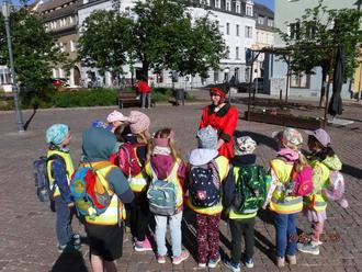 In den letzten Wochen standen gleich drei große Ausflüge für unsere diesjährigen Schulanfänger an. Angefangen mit der Busschule, bei der die Kinder das richtige Verhalten im Bus, an Bushaltestellen und Ampelkreuzungen praktisch üben konnten, ging es einige Tage später weiter zur Abschlussfahrt. Schon ganz früh am Morgen machten wir uns mit dem Bus auf den Weg nach Oschatz. Dort angekommen packten wir auf dem Neumarkt die Brotdosen aus und frühstückten. Gut gestärkt konnten wir zu unserer ersten Station des Tages starten – eine märchenhafte Stadtführung durch Oschatz.
