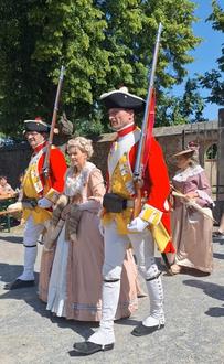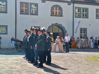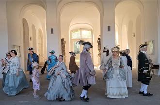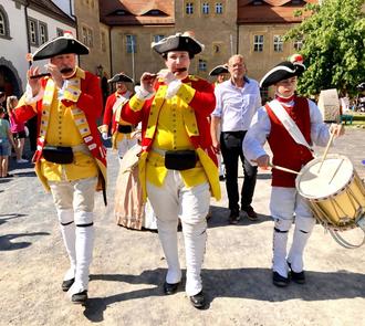 Im Schlosshof patrouillierte die Leibgrenadiergarde und bot Exerzier-Übungen dar. Die Darsteller aus der Zeit des Barock führten in der Schlosshalle königlich graziöse Tänze auf.