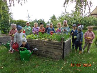 Seit einigen Jahren stehen im Kita-Garten der Döllnitzküken zwei Hochbeete, die jedes Jahr mit verschiedenen Pflanzen bewirtschaftet werden. Die Kinder helfen sowohl bei der Vorbereitung, als auch der Bepflanzung und Pflege fleißig mit und freuen sich, wenn Kohlrabi, Gurke, Tomate und Co. geerntet werden können.