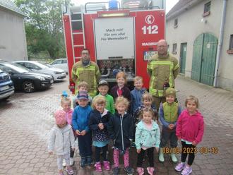 Plötzlich und unerwartet für alle Kinder und Erzieher erklingt der Feueralarm in der Kita Lampersdorf. Die Feuerwehr Wermsdorf war schon alarmiert und stand für die Brandschutzübung am 8. August bereit. Da alle Türen verschlossen waren, führte der Fluchtweg durch das Fenster eines Gruppenraumes. Mithilfe der Feuerwehrmänner konnten alle diesen sonst eher ungewöhnlichen Ausgang schnell bewältigen. Anschließend ging es für Kinder und Erzieher zur Sammelstelle im Garten.