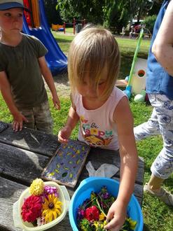 Offene Münder, strahlende Kinderaugen und viele neugierige Fragen belohnten das Engagement der Paten. Ganz lieben Dank nochmal! Eine interessante Erfahrung haben die Kindergartenkinder beim Papier schöpfen gemacht. Mit nur wenigen Utensilien stellten sie selbst Papier her. Verziert mit getrockneten Blumen wurde daraus ein zauberhaftes Blatt gestaltet. Als wunderbare Erinnerung an die Sommerferien, haben die Kinder ein Ferienbuch mit vielen tollen Basteleien gestaltet.