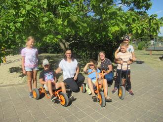 Ein Roller, ein Shopper und ein Liegerad erweitern nun den Fuhrpark und sorgen für viel Bewegung, Spaß und Begeisterung bei den Kindern. Kaum das die Fahrzeuge angekommen waren, wurden die neuen Gefährten sofort ausprobiert und sind seitdem heiß begehrt.