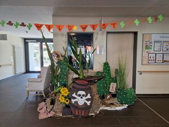 Am 20.08. fand unser alljährliches Sommerfest unter dem Motto „Western“ statt. Alle Bewohner und Bewohnerinnen des Hauses waren dazu eingeladen. Die Vorbereitungen liefen bereits vorher auf Hochtouren. Das Haus wurde von den Kolleginnen der Betreuung festlich geschmückt und die Küche bereitete die Speisen für das am Abend geplante Grillfest vor.