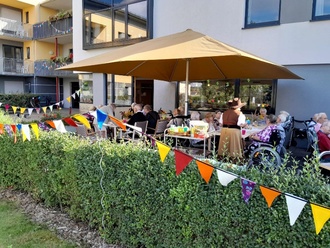 Nach dem Auftritt der Tanzgruppe wurden alle Bewohner in den Außenbereich auf die Terrassen begleitet. Bei einem Glas Bier oder einem Glas Bowle konnten alle Bewohner und Bewohnerinnen den Nachmittag Revue passieren lassen. Unser Haustechniker grillte in der Zeit die Steaks, Roster und den Leberkäse vor. Diese konnten danach mit Kartoffel- oder Nudelsalat gegessen werden. Vielen Dank an alle diensthabenden Kollegen, die das Sommerfest für unsere Seniorinnen und Senioren ermöglicht und zu einem unvergessenen Ereignis gemacht haben.