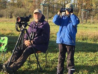 Janne und Ornithologe Peter Staudt bei der Beobachtung der Zugvögel im Herbst 2022