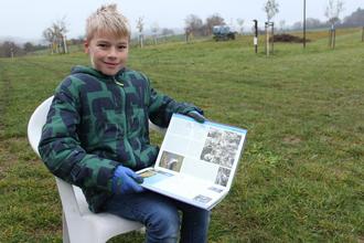 Für seine Studien und für das korrekte Bestimmen der Vogelarten nutzt Janne bei seinen Beobachtungen auf der Streuobstwiese des Vereins ornithologische Fachbücher, von denen schon einige in seinem Kinderzimmer im Bücherschrank stehen.