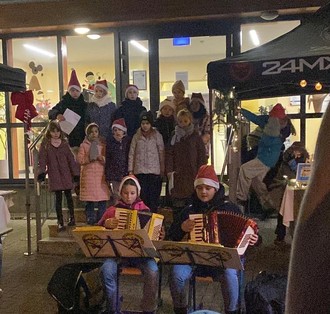 Die Klasse 1 verkaufte köstliche Wiener, die Klasse 2 duftende Plätzchen, die Klasse 3b tolle Schokofrüchte, am Stand der Klasse 3a gab es Glühwein und süßen Kinderpunsch, und die Klasse 4 grillte saftige Roster und Steaks. Alles schmeckte sehr gut.