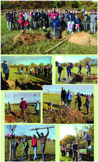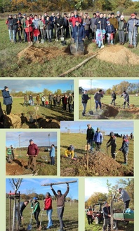 Der goldene Herbst zeigte sich noch einmal von seiner schönsten Seite, als sich am 4. November ca. 90 Naturfreunde zum Arbeitseinsatz auf der Streuobstwiese versammelten. Sie alle waren dem Aufruf der BI zum Schutz der Natur und Umwelt von Gold-bis Rosenbach zur gemeinsamen Pflanzaktion gefolgt und packten tatkräftig zu.