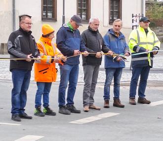 Von Vertretern der Gemeinde Weischlitz, des Vogtlandkreises, des Landesamtes für Straßen und Verkehr und der beteiligten Firmen und Planer wurde das Band zur offiziellen Freigabe durchschnitten.