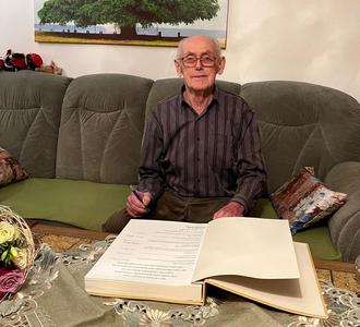 Da Rudolf Gerisch aus gesundheitlichen Gründen in der Dezember-Sitzung des Gemeinderates zur Verleihung des Bürgerpreises nicht anwesend sein konnte, wurde er Anfang Januar zu Hause besucht.