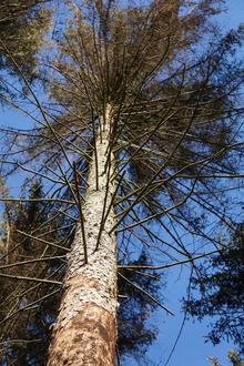 | 1. | Da der Buchdrucker im vergangenen Jahr sogar eine dritte Generation angelegt hat, sind befallene Bäume teilweise erst jetzt zu erkennen. Die Käfer überwintern in diesen Bäumen oder im Boden. Diese Bäume müssen bis Ende März aufgearbeitet und abtransportiert werden. Zudem muss im Umfeld dieser Bäume später besonders intensiv nach frischem Borkenkäferbefall gesucht werden. |