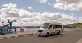 Der SaisonBus 74 auf der Staumauer der Talsperre Pöhl. Foto: Verkehrsverbund Vogtland GmbH