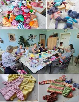 An dieser Stelle ist es den Damen mit der flotten Nadel ein Bedürfnis, sich für die großzügigen Wollspenden herzlich zu bedanken. Zum Beispiel erhielten wir im August zwei große Kisten mit Wolle. Daraus werden Babyschuhe, Kleidchen, Jäckchen, Decken und und vieles mehr gefertigt. Diese werden dem Familienbüro der Stadt Leipzig für frischgebackene Eltern als Babystartpakete übergeben. Oder die Frühgeborenenstation des St. Georg erhält diese Sachen.