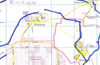 ... in dem die Verbindung zwischen dem Ort und dem Grundgraben bzw. Östlichen Vorfluter (leider gibt es ab und zu Unterschiede der Namen für die Gewässer der II. Ordnung) als offener Graben dargestellt ist. Dieser Plan wurde an die Verwaltung weitergeleitet. Wir sind gespannt, wie man sich hier wieder rausredet.