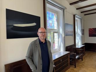 Christian Kern mit seinen Fotografien im Rathaussaal