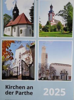 Das Partheland umfasst über 80 Ansiedlungspunkte, die fast ausschließlich auch mit mindestens einem Kirchenbau ausgestattet sind. Deshalb beschränkt sich dieser Kalender nur auf die unmittelbaren Parthe Siedlungen und stellt 24 Kirchen unterschiedlicher Bauepochen vor, von den ältesten romanischen, wie in Erdmannshain, bis zum modernen Stahlbetonbau von Gohlis, sowie auch die drei Hohepriester des Leipziger Landes, die exponierten, weithin sichtbaren Kirchen von Beucha, Panitzsch und Thekla. Aber auch die unterschiedlich reiche Ausstattung, vom schlichten Holzkreuz in der Apsis der Dewitzer Kirche bis zum prunkvoll vergoldeten Altarepitaph der Patronatskirche Pomßen sowie historisch wertvolle Orgeln, Glocken und Heiligenfiguren werden gewürdigt.