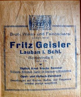 Jetzt kommt die traditionsreiche Bäckereifamilie Geisler ins Spiel. Backwarentüte von 1945