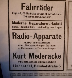Kurt Mederacke, Fahrräder, Zubehör und im Hinterhaus die Werkstatt