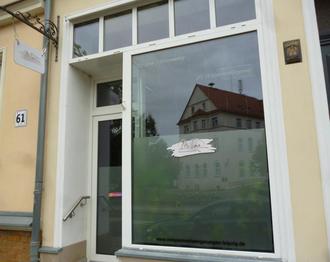 Rechts schaut der Geselle aus der Backstube, die heute das Domizil für das Blumenhaus Gordelt ist. Im Ladenlokal ist heute eine nüchterne Information der Allianz-Vertretung Poltersdorf zu sehen. Ist das sehenswert?