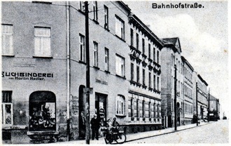 Buchbinderei und Schreibwaren Martin Hedler am Anfang der Bahnhofstraße.