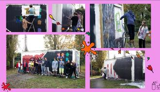 Mit unserem Ferienangebot hatten Kinder – und Jugendliche die Möglichkeit zur Teilnahme an unterschiedlichen „Herbstworkshops“. Marthe Lallemand, eine französische Künstlerin, leitete den Kunstworkshop, mit dem Ziel gemeinsam unseren grauen Container bunt und wild zu gestalten. Das Ergebnis kann sich definitiv sehen lassen!