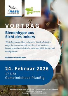 Und am 24.02. 17.00 Uhr setzen wir im Gemeindehaus Plaußig unsere Vortragsreihe mit dem Titel „Bienenhype aus Sicht des Imkers“ fort. Unser Berufsimker Richard Beer wird interessante Details zur Imkerei erzählen und das gesamte Spektrum der Wild- und Honigbienen beleuchten.