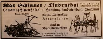 Es ist schon eine Sensation, dass hier im OT Lindenthal der inhabergeführte Fahrzeug-Servicebetrieb „Max Schirmer“ nach 135 Jahren noch heute für seine Kunden aktiv ist. Sachsenweit gibt es keine vergleichbare ältere Firma, die sich durch 5 Gesellschaftsordnungen und 2 Weltkriege im Maschinen- und Fahrzeug-Service am Markt behauptet hat.