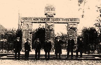 Der junge Unternehmer scharte 1924 um sich eine gleichgesinnte Gruppe Lindenthaler für die Finanzierung, Gestaltung und Aufbau einer Gedenkanlage auf dem Kirchhof für die gefallenen Lindenthaler Soldaten im Ersten Weltkrieg.
