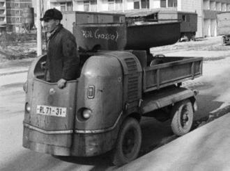 Stehameise 1958 Links: die fußgesteuerte Stehameise D 3/M 21, Rechts: Der Multicar M25 war der Auftragsbringer bei Schirmers mit über 100 Serviceleistungen pro Jahr.