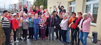 Die Tanzmäuse treffen sich immer montags im Begegnungszentrum. Mitte Februar wurde Fasching gefeiert und Edda Torge gesellte sich ausnahmsweise für das Foto dazu (ganz rechts).