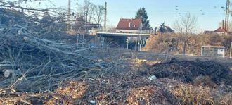 Auf Nachfrage bei der Deutschen Bahn erfuhren wir, dass die Fläche z.B. an der Südtangente Ecke Birkenring (siehe Foto oben), eine von mehreren so genannten Baueinrichtungsflächen ist. Das heißt, hier werden Container und Baumaschinen abgestellt. Die Fläche ist nicht im Besitz der DB und nur für die Zeit der Baumaßnahme angemietet. Eine Erlaubnis fürs Betreten des Grundstücks und die Entnahme des Holzes kann nicht erteilt werden.