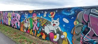 Die Bauabsperrungen an der Messe-Allee sind durch diese Graffitis ein Hingucker.