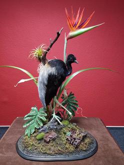 Präparator M. Fischer stellt neue Tierpräparate, wie den Trompetervogel und die Vieraugenbeutelratte vor und gibt einen Einblick in seine Arbeit, in der sich Kunst, Handwerk und Wissenschaft vereinen.