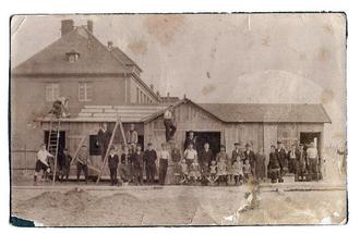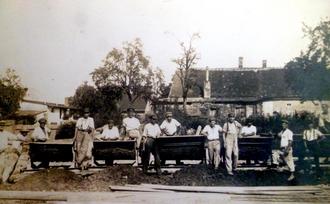 Foto 1923 die SPD-Badbaubrigade in der Teichstraße (Parkplatz am Rathaus)